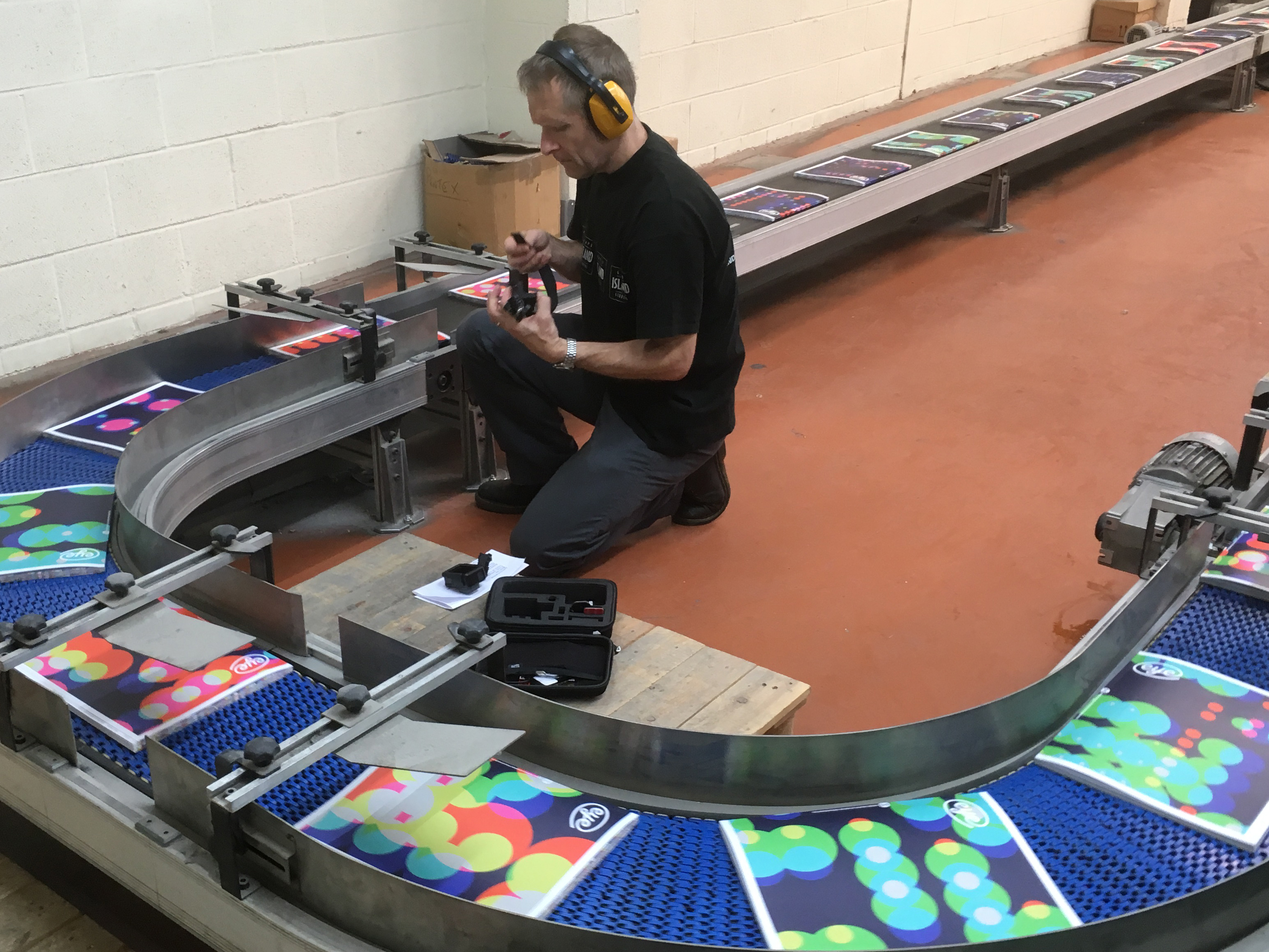 94 director Adrian Harrison preparing to shoot the covers on the binding line at Pureprint.