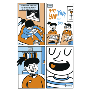 Four-panel illustration by Aoife Dooley from her graphic novel Frankie’s World, 2022.