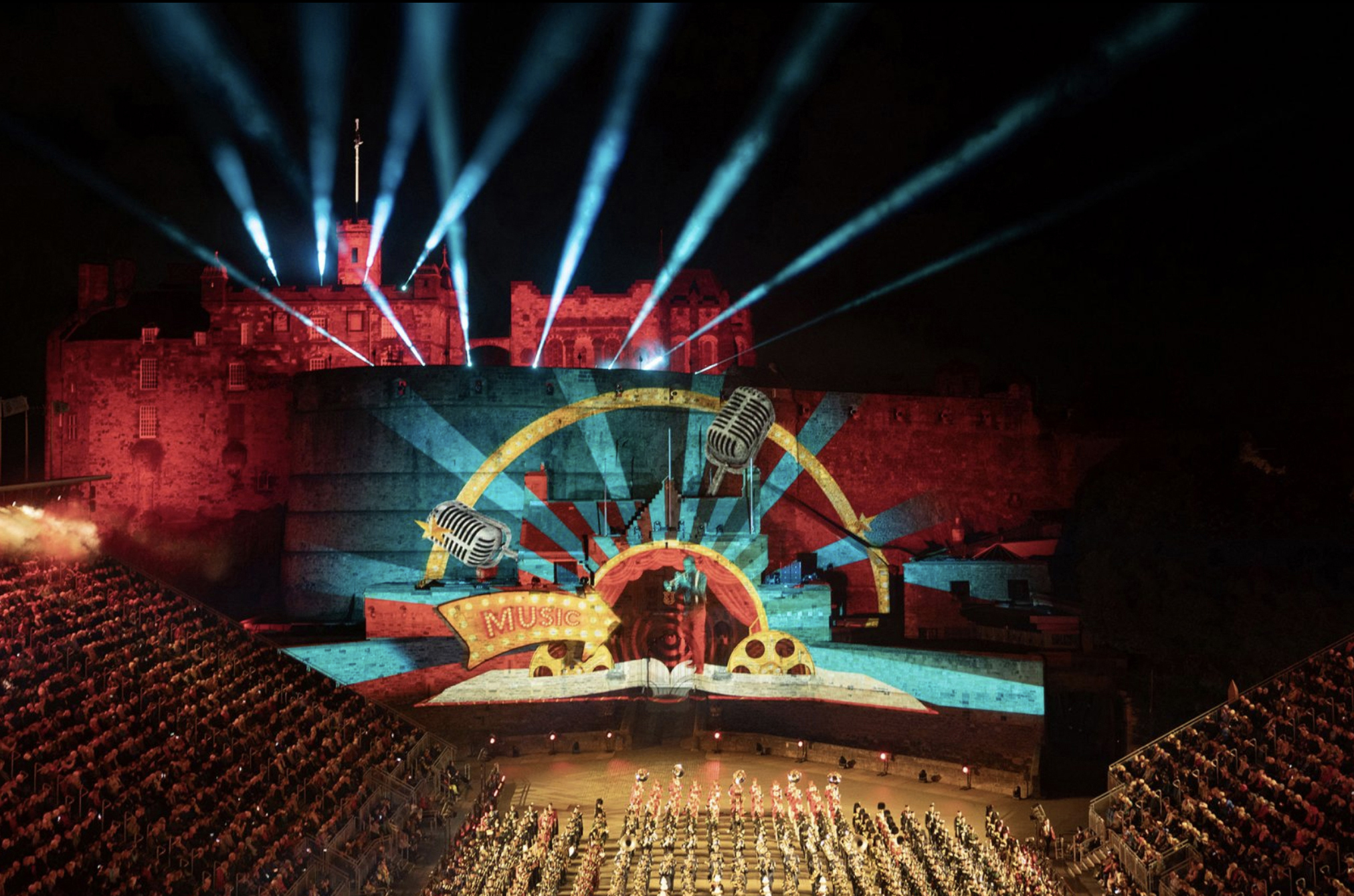 Projection mapping by Kate Dawkins for Royal Edinburgh Military Tattoo, 2023.