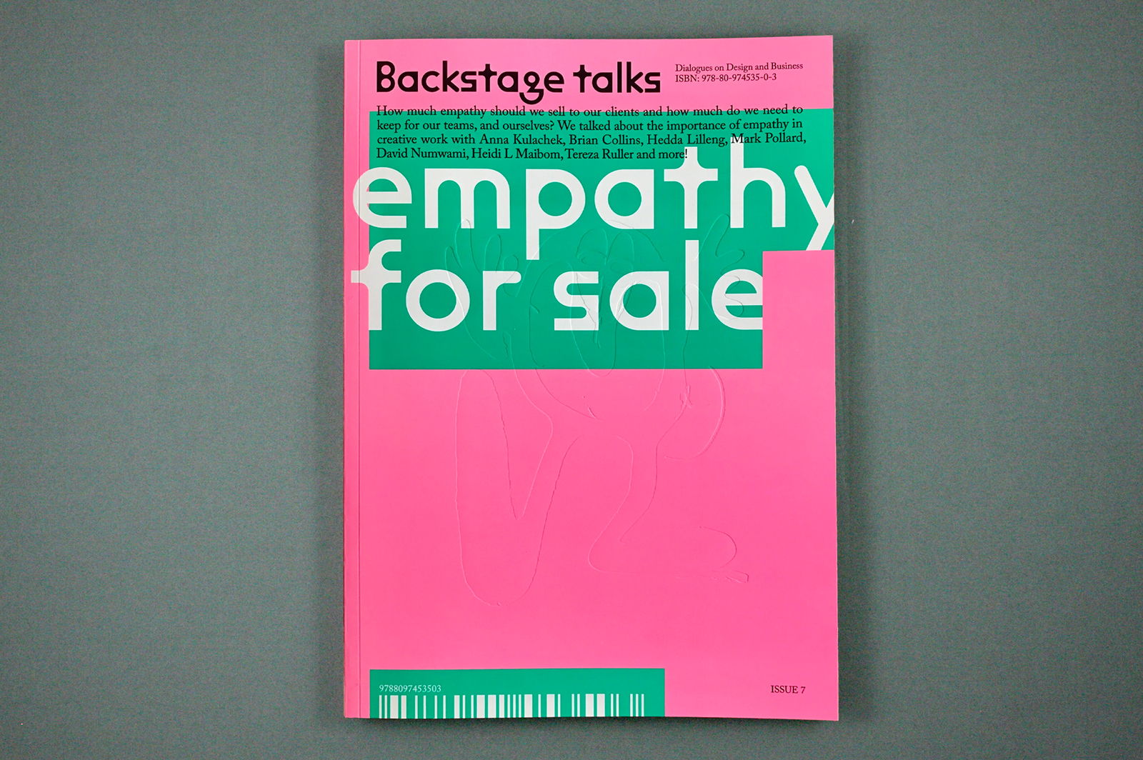 The cover of Backstage Talks issue 7, designed by Chloe Scheffe, features blind illustrative debossing.