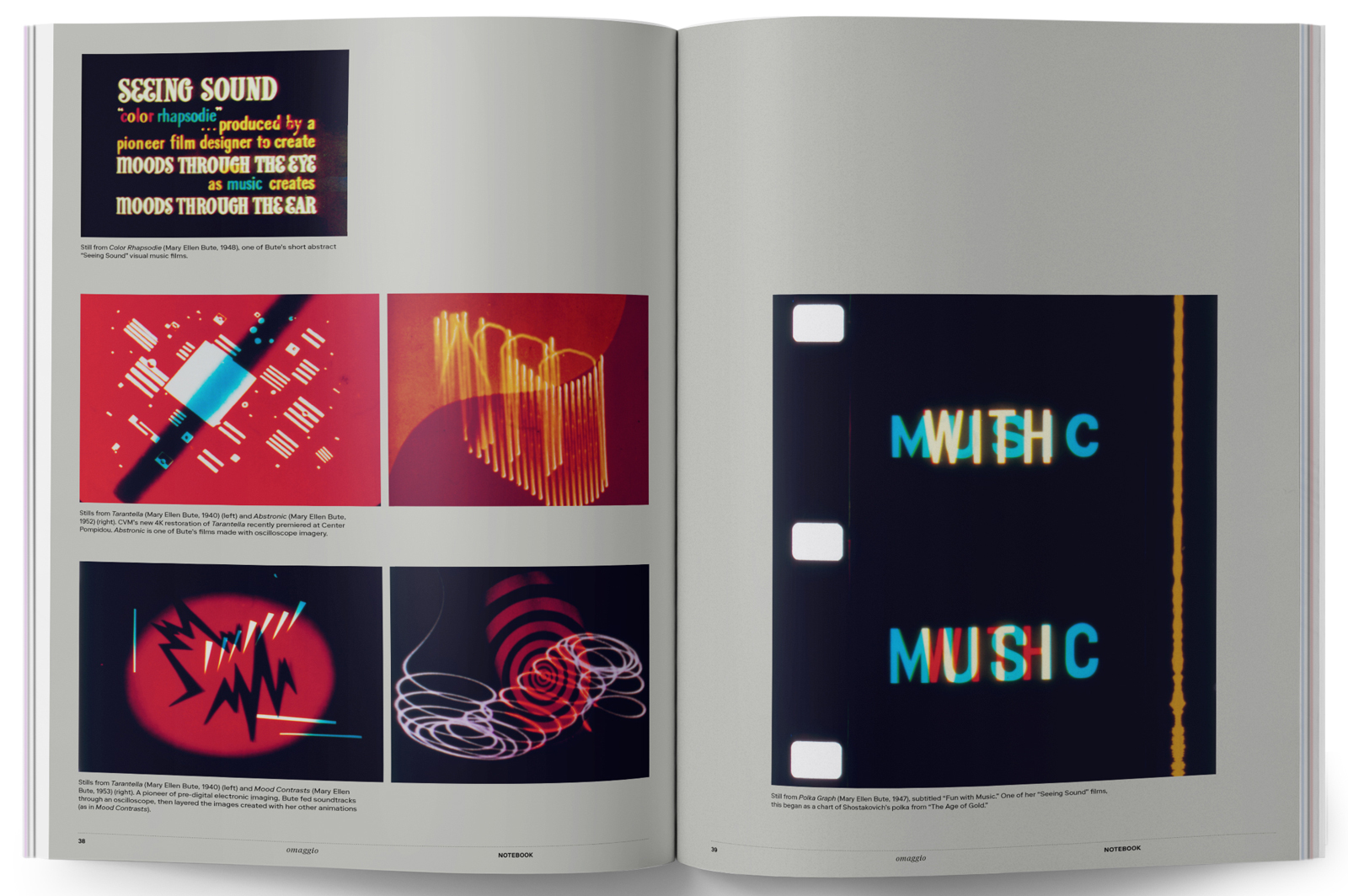 Issue 4 of Notebook magazine focuses on sound and music, including an article about ‘Visual Music Pioneers’ that includes 1940s work by Mary Ellen Bute (below).