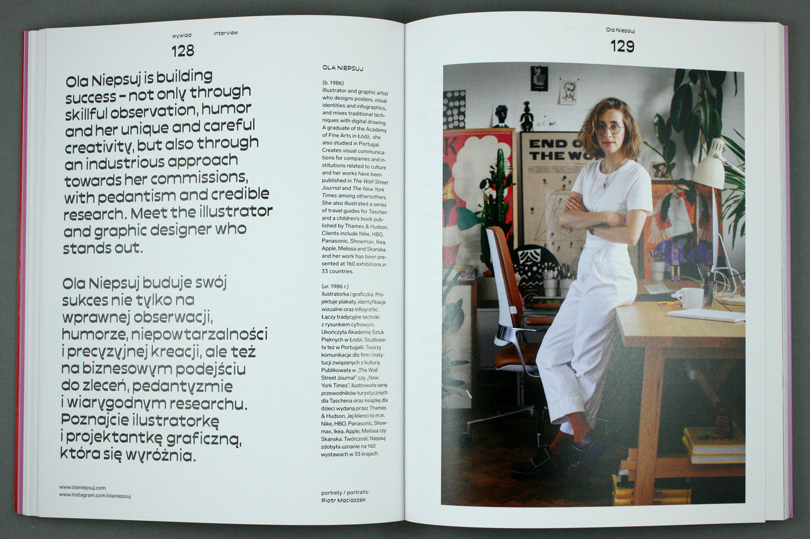 Spread of an interview with designer and illustrator Ola Niepsuj.