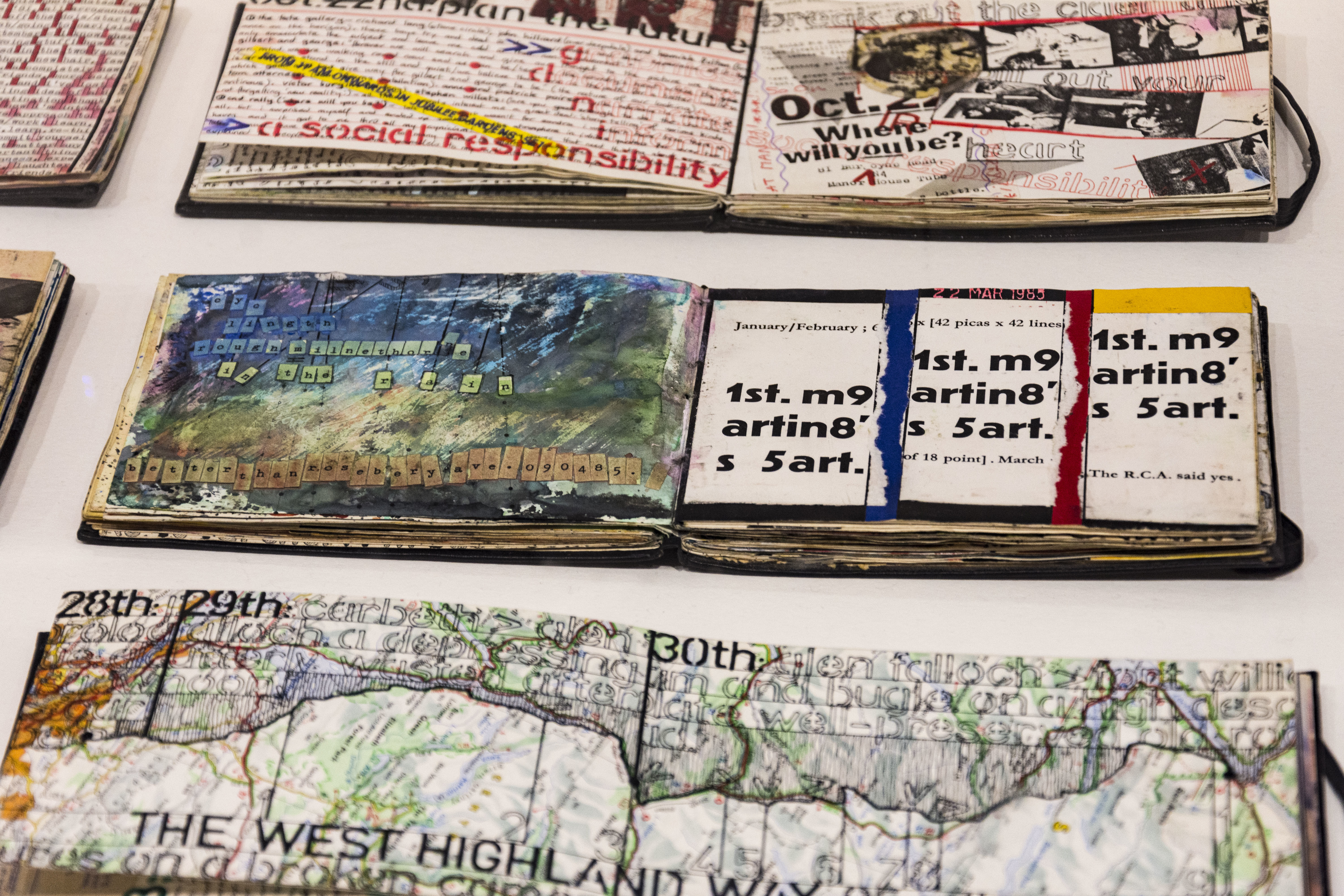 Phil Baines’s sketchbooks, 1980s. Photograph by Jamie Johnson.