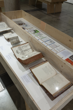Vitrine with miscellaneous books, including a seventeenth-century treatise on horse breeding, plus covers from the Penguin ‘Great Ideas’ series. Photograph by Gary Wallis.