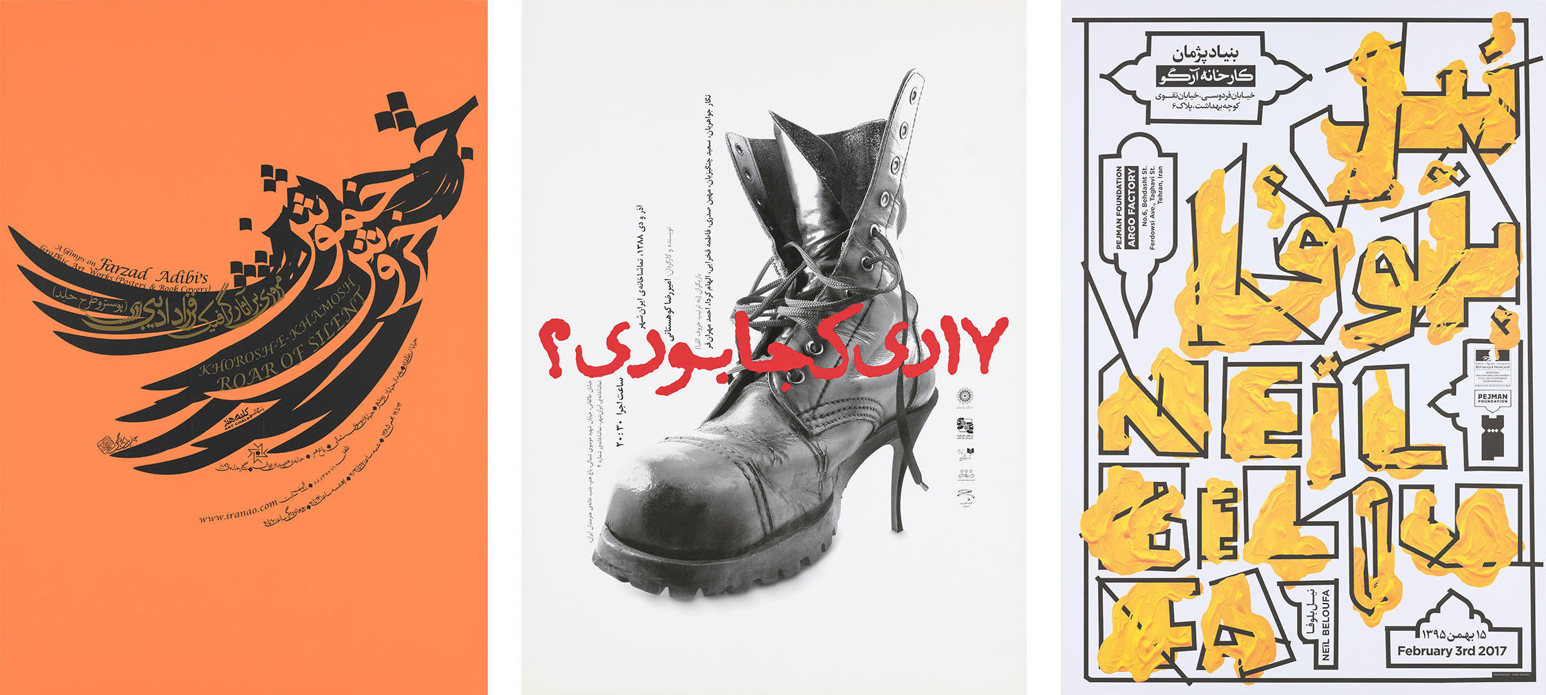 Posters featured in the exhibition ‘Visual Poetry: Contemporary Posters from Iran’.