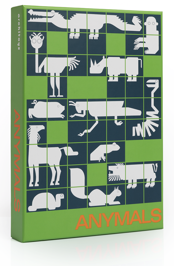 Another Friday-afternoon inspired game was Anymals. Czech illustrator Daria Gan, a regular collaborator with KGA, drew some delightful animals whose playfulness extends to their naming: ‘Squeaky Squirrel’, ‘Calamity Camel’, ‘Wonkey Monkey’ and more. The game comprises 96 cards. Each 7cm square card contains part of one Anymal. The objective of the game is to build as many complete animals as possible.