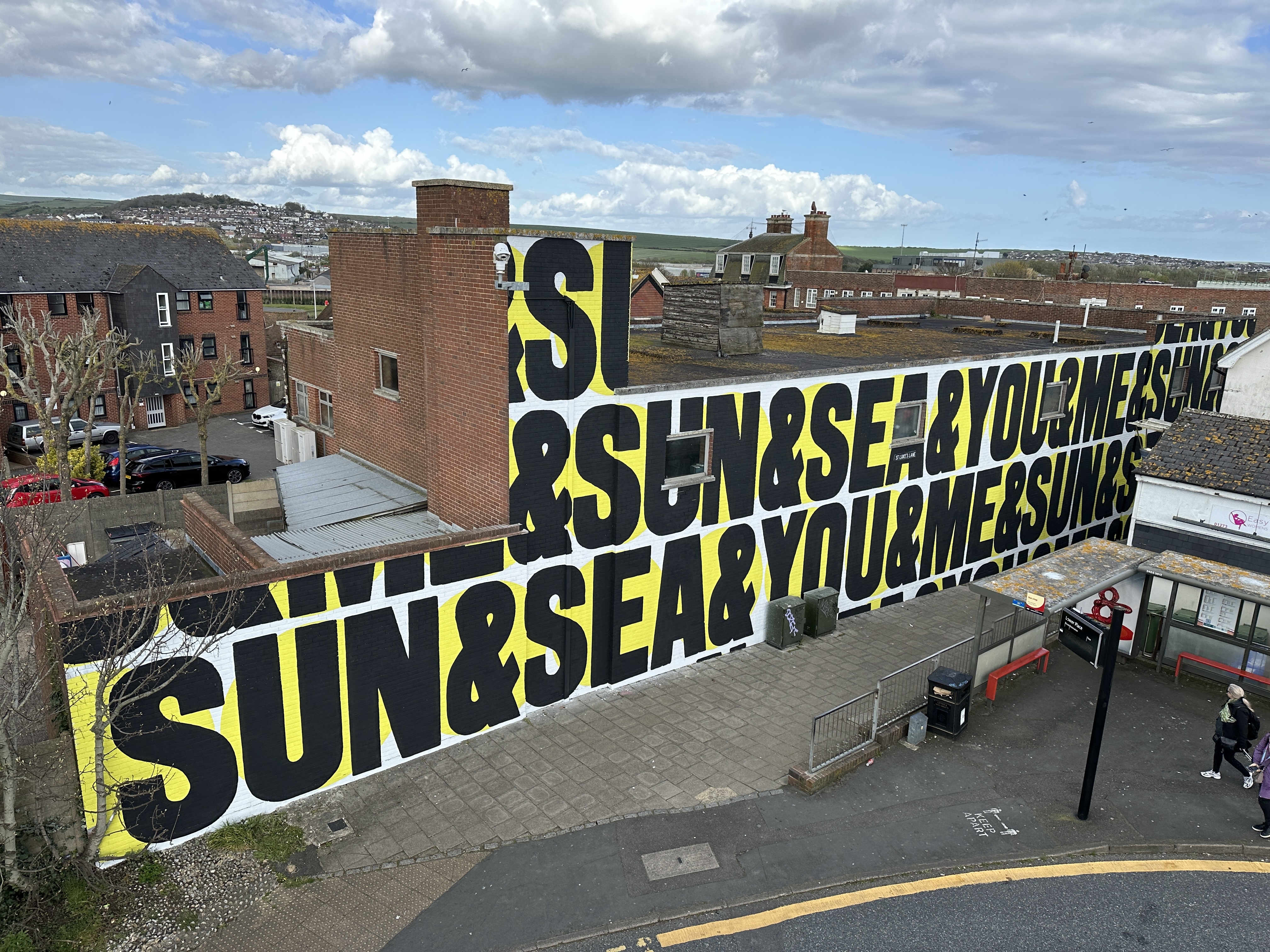 A 40m-wide mural created by Anthony Burrill on St Luke’s Lane in Newhaven, installed by Many Hands Studio.