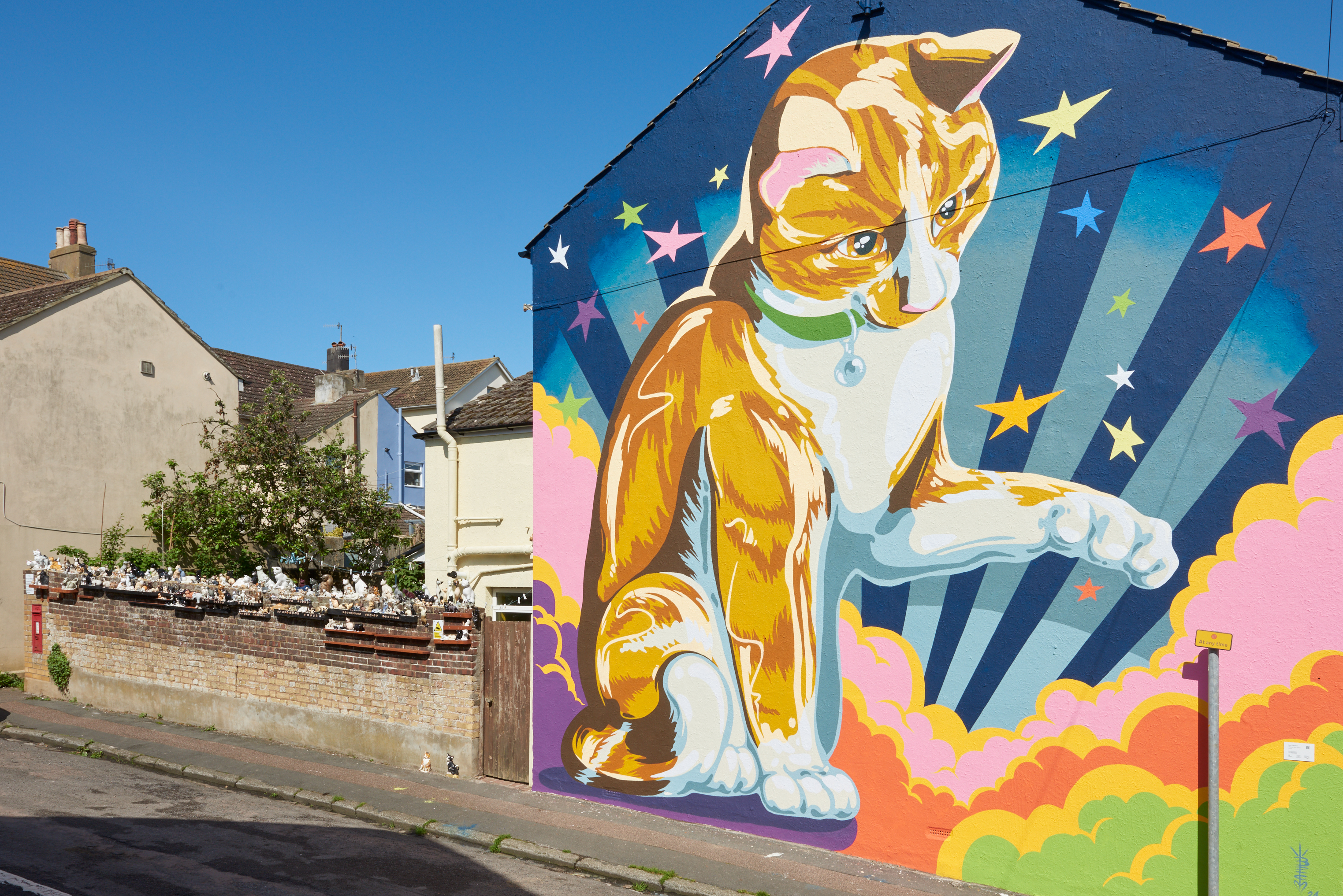 Mural by Bec Dennison aka Bullet on a String titled Stripes and Stars which features a resident’s beloved cat, installed by Dennison’s all-female team. Photo: Johnnie Bassett.