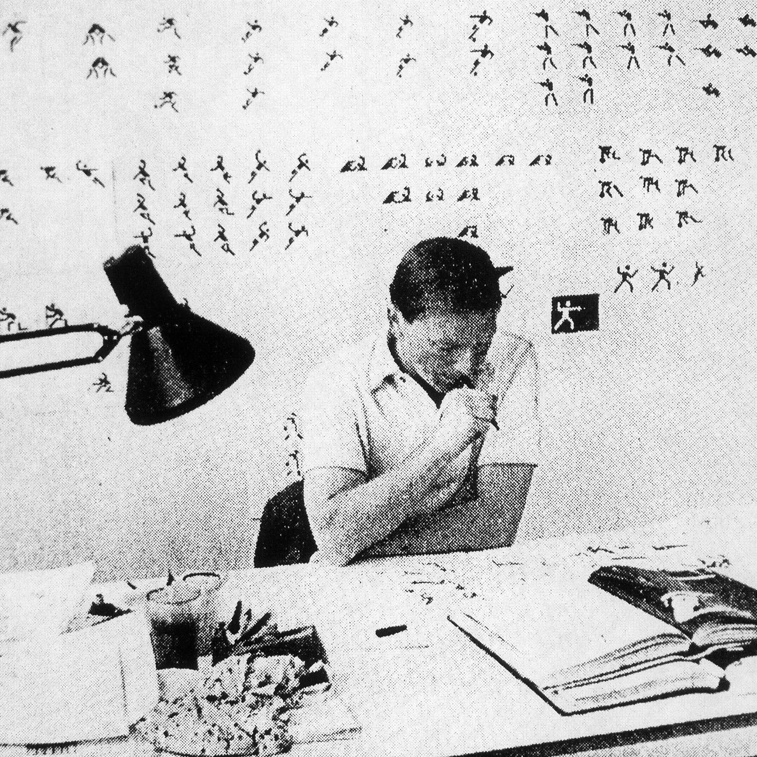 A booklet explaining Mark Holt’s investigation into ‘The myth of Otl Aicher’s pictogram grid’ begins: ’Between 1967–72, in the pre-digital age, Otl Aicher and Gerhard Joksch utilised a simplistic grid to help them conceive a harmonious set of sports event symbols for the 1972 Munich Olympic Games.’