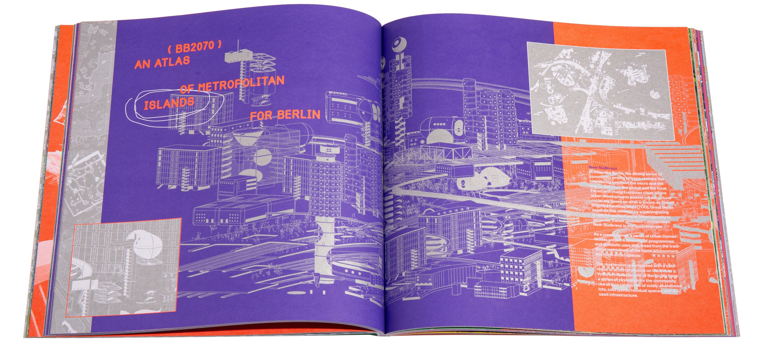 Right. Spread. from the book highlighting Berlin-based New Südkreuz and Transit Oriented Developments (OTD).