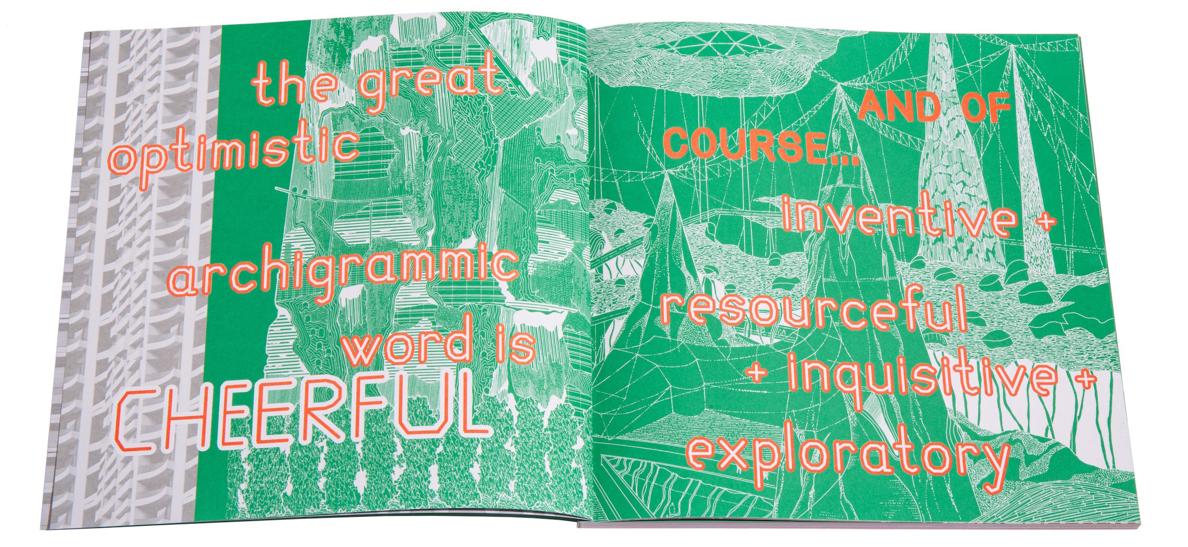 When I worked on the Architectural Review, we were sternly injuncted to ‘make the building live on the page’. Here, the tenor is more ‘make the building freak out on the page’, with projects enrobed in verbiage, their impact amplified by hectic, retina-searing graphics. No chromatic turn is left unstoned: orange, green, purple and silver predominate, often all at once. (Props to Hong Kong-based printer C&C; it probably made an invigorating change from churning out Macau passports.) Designer Pedro Pina of PG Howlin’ Studio clearly had fun with this one, which also features typefaces from Gaile Pranckunaite and Dinamo. The outcome is indubitably more turbocharged than anything Zipatone and hand-stencilling could ever contrive.