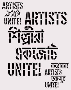 ‘All they had to do was to use the Artists Unite typeface – to write anything, really – and it would be identifiable,’ says Nallaperumal. The font (in Latin only) comes with the heartfelt command: ‘This typeface is for use only for anti-fascist purposes and not to be used for commercial purposes.’