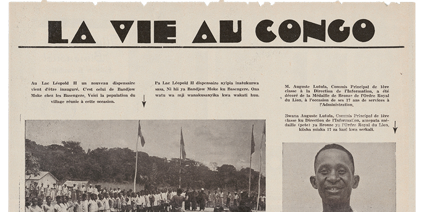 Even after the war, the propaganda machine in Congo continued to run at full speed via film, radio, newspapers, magazines and posters. In Gombe (then Kalina), an administrative district of Kinshasa then known as Léopoldville, the bi-monthly photography magazine Nos Images was published, aimed at Congolese readers. On the ‘La vie au Congo / La vie en Belgique’ pages, life in both countries was compared. Indépendant was chosen for the Congolese pages, but for the Belgian pages, Jan Tschichold’s Transito typeface was used.