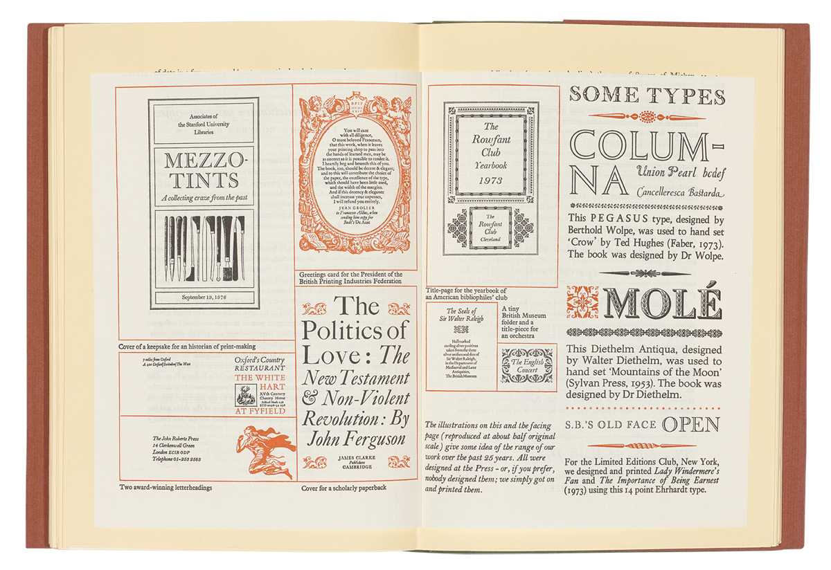 It’s gut instinct. But we were so lucky. Thanks to Stephanie I had this shed where I could dream out my dreams and fiddle around. There was always this excitement commuting down on a Friday to see how the building work was going. During the week in London I designed and produced Heinemann’s science list. Everybody was throwing their letterpress machinery out so I could get presses. I love the pretty bits, the pull-outs and tip-ins, but my top priority with Matrix is recording things while people are still around, like the work of the printer Bernard Roberts. Academic printing history bores me, but I love getting people who knew people when they were still around. Somebody who knew Eric Gill or Edward Johnston. To get all that recorded before they pop off. Printers are often more interesting than the stuff they print. I wanted to get this stuff down: it’s a resource for the future. I have a low boredom threshold so I try to make it entertaining: you’ve got to engage the reader. Not have 50 footnotes. I only ever ask people I have an empathy with to contribute. The ideas for the articles always come from me. I’m in a fortunate position of knowing all the main letterpress printers worldwide. We travelled a lot in America. I admire the US private press movement … Vance Gerry and The Weather Bird Press in California. In New York, Barbara Henry. Then there’s a gang of them in the Midwest. We used to go once or twice a year. There’s a tremendous amount of letterpress activity in America: they’ve got the funds.