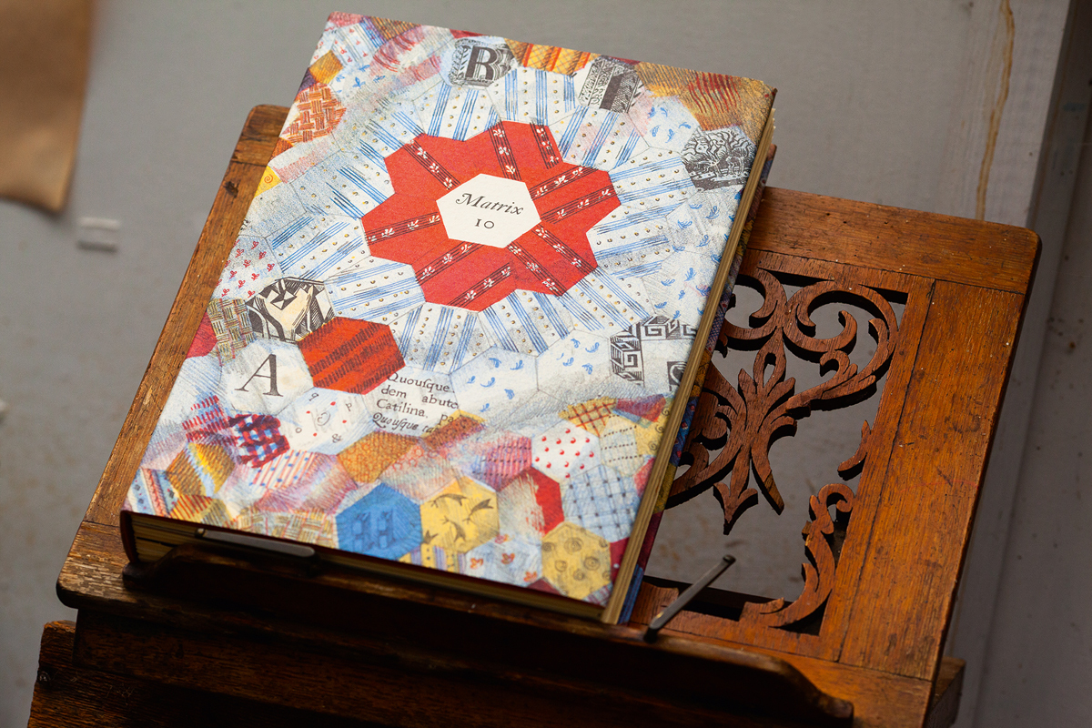 Randle’s Whittington Press is based in a much-extended former gardener’s cottage. Matrix is printed here on the Press’s Wharfedale and Heidelberg letterpress machines and typeset in metal on its Monotype system.