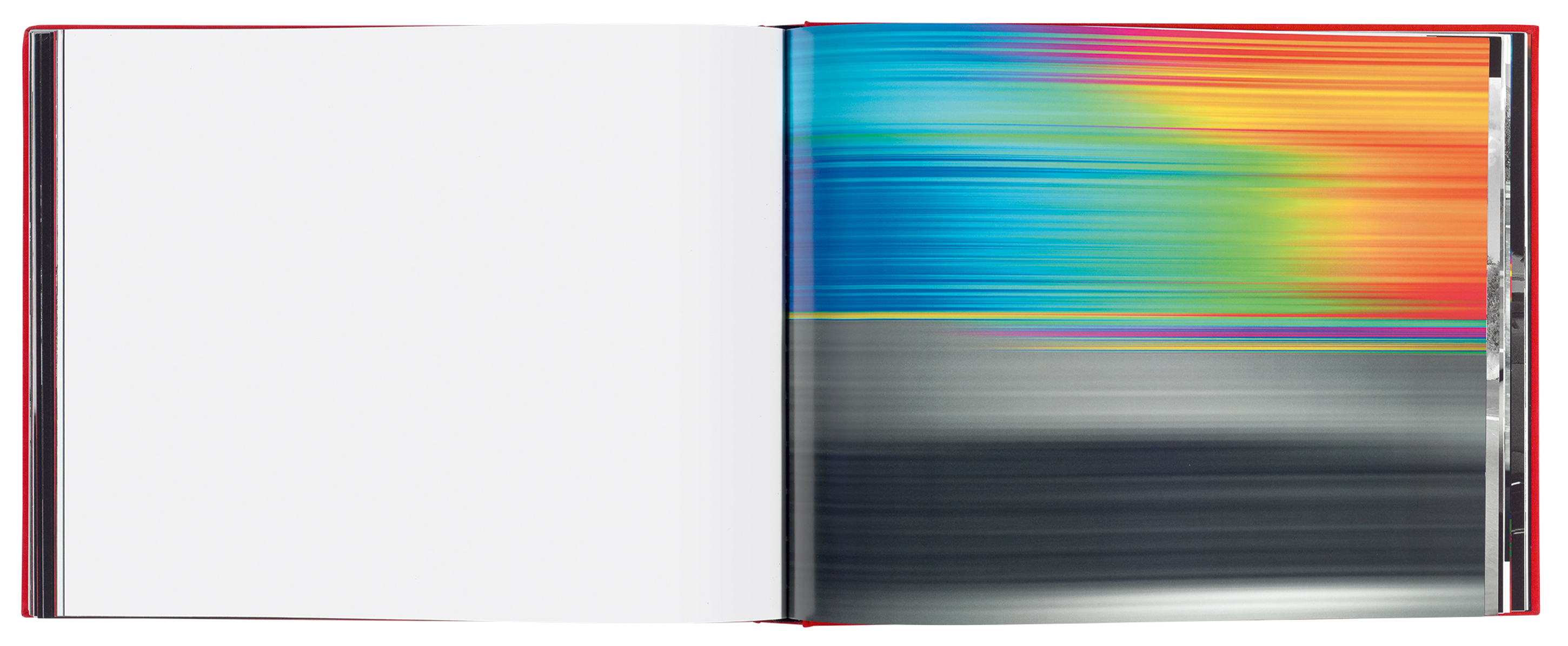 ‘The small windows of colour became important jump-off points to me,’ says Dunn, who repeatedly zoomed in, blurred and saturated the pictures to make a series of what Sylvian called ‘sugar rush’ images. ‘These were then wrapped around the sixteen-page signatures of the book and printed in high gloss. The architecture of the binding structures the book.’