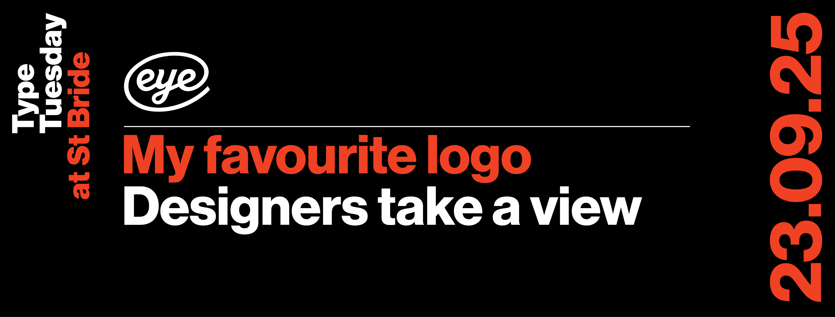 Tickets are now on sale for ‘My favourite logo’, our next Type Tuesday at St Bride Library on 23 September 2025. Eye has asked a handful of distinguished designers to discuss what makes a great logo and make a case for their favourite example, past or present. This will be a fun evening, with a chance to vote for your favourite logo. Last September’s ‘My (favourite) font’ sold out quickly, so do book early to avoid disappointment. I am assured there will be stickers!