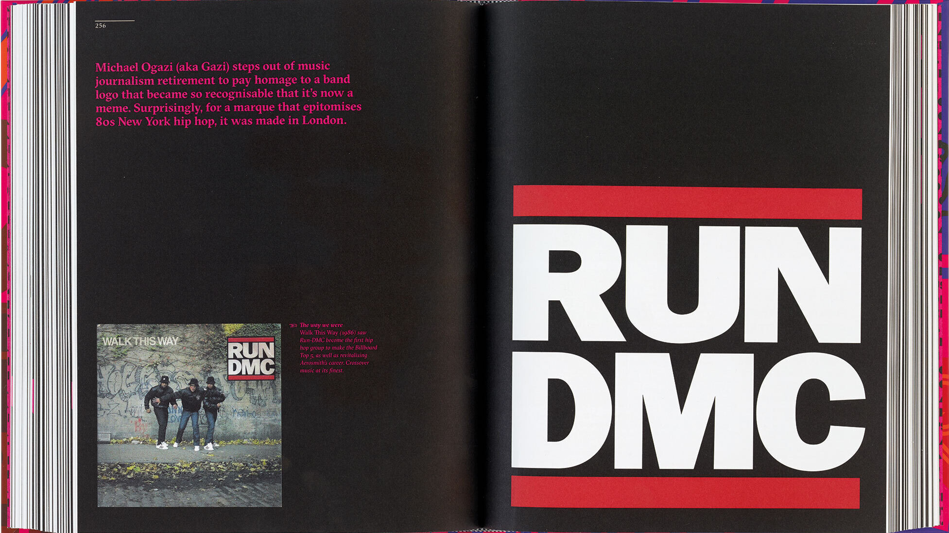 We learn that Run-DMC’s enduring logo (above), with its sturdy red rules and Franklin Gothic Bold caps, was designed by the UK team at Island Records. Fiona Skinner, now head of design at daytime ITV, designed the logo for The The. Cartoonist Hunt Emerson devised the neat ‘Beat Girl’ image and logo for The Beat.