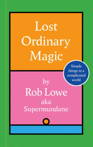 Rob Lowe, the artist, illustrator and writer who works under the name Supermundane, tries to lead a simple life. In recent years, his work has also taken on a more straightforward direction, employing largely ‘circles, squares, right angle and 45-degree lines’ for clients as varied as the UEFA Champions League, Pulp journal and Tooting Bec Lido. Lowe’s art – the personal work he sells as colourful prints and other handmade items – has followed a similar path towards geometric immediacy and simplicity. With writing now part of his practice, this first book is a natural outcome.