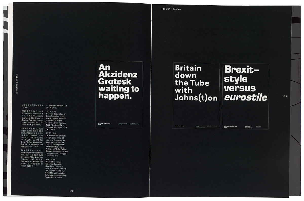 Yet Griffiths’ best known work, shown in Solo in [ ] Space as photographs and diagrams that explain where they fit into Zhihua Duan’s curation, are big public statements, large-scale graphics made with a confidence and generous vision that has been at the root of Griffiths’ typographic work for decades.